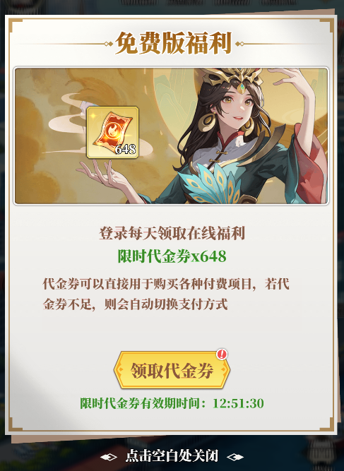 3.每日可領(lǐng)免費(fèi)的648游戲內(nèi)代金券