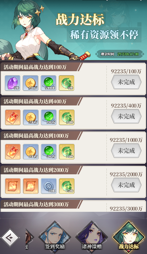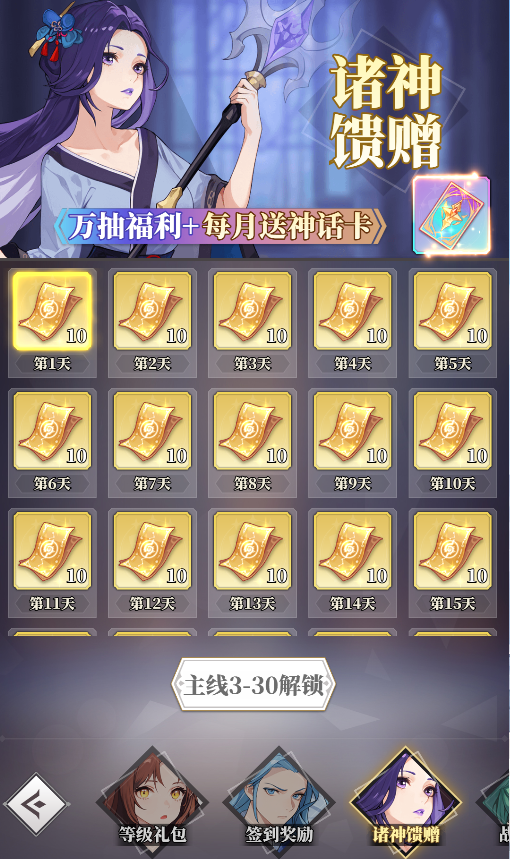 2.在線(xiàn)資源多多,新玩家在線(xiàn)30分鐘可免費(fèi)獲得靈玉*100、隨機(jī)五星神靈*1、SSR卡自選包*1、請(qǐng)神符*10以及若干材料。