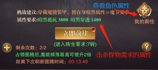 要擊殺副本中的怪物,需要滿足副本怪物的屬性要求,否則會被副本中的怪物“秒殺”。所以我們挑戰(zhàn)副本需要根據(jù)副本頁面右側(cè)的“我的屬性”一欄,查看角色的屬性值,來挑選副本中合適的怪物進行擊殺,待滿足了下一層怪物的屬性要求后,再進行前往挑戰(zhàn)。層數(shù)越高的怪物,屬性要求會越高?