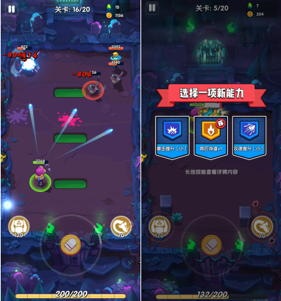 每通過一定的關(guān)卡數(shù)后,便會獲得空投獎勵,選擇強化本次闖關(guān)的能力,合理選擇需要的能力,可以幫助玩家通過更多的關(guān)卡。