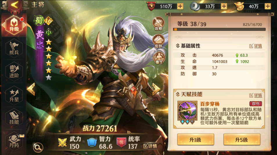 黃忠搭配張飛,劉備,趙云就可以湊齊五虎上將組合,三五虎上將會有30%的概率將天賦技能連續(xù)釋放一次!