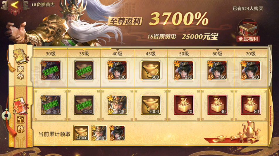 后排英雄玩家可以通過游戲內(nèi)免費(fèi)贈送的高級求賢令抽去16資質(zhì)武將去補(bǔ)齊后排缺失的輸出。這邊推薦玩家可以購買6星黃忠獲得獲得16資質(zhì)黃忠,玩家購買后通過16資質(zhì)黃忠活動可以獲得弓神印,在晉升臺可以將黃忠晉升為18資質(zhì)紅將黃忠。