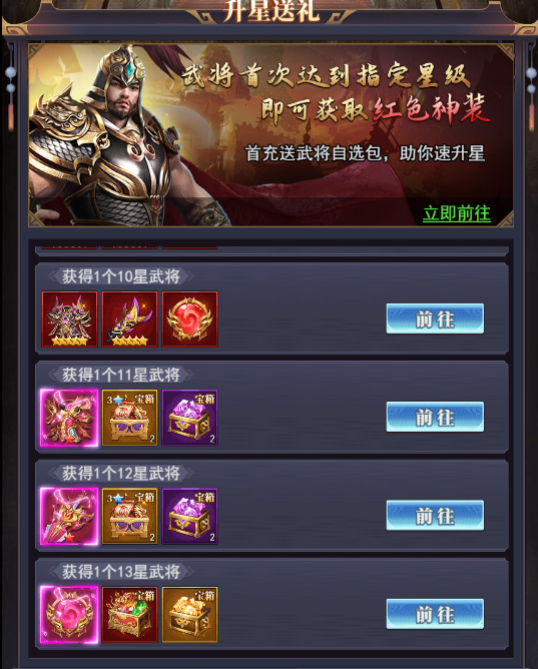 4、武將升星,免費(fèi)領(lǐng)取紅色神裝和粉色時(shí)裝等大量稀有道具豪禮