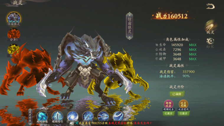 1、戰(zhàn)靈:通過元寶培養(yǎng)戰(zhàn)靈和戰(zhàn)靈幻化來提升戰(zhàn)力以及屬性。